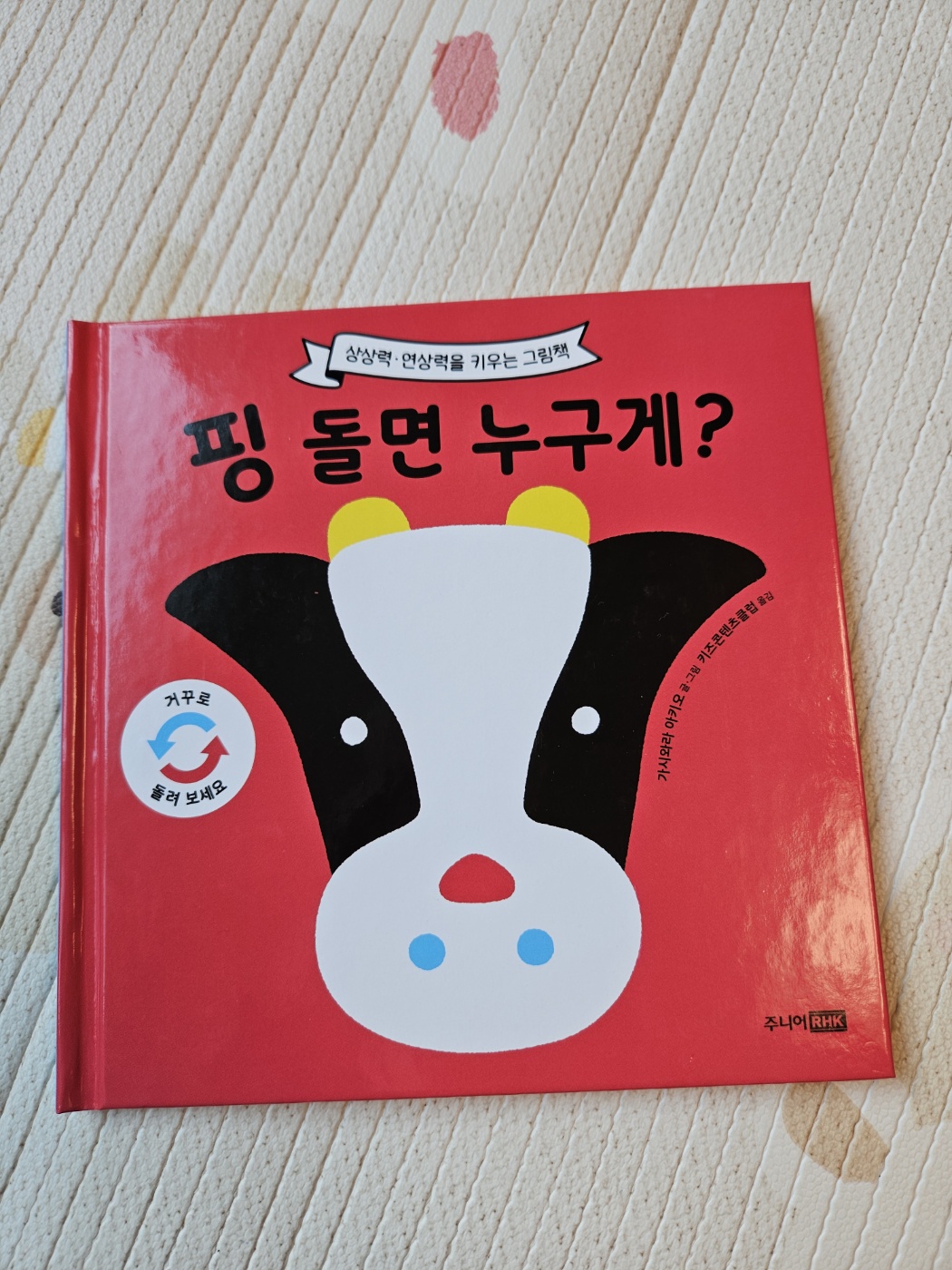 업체로부터 제품을 제공받아 작성된 후기입니다. 핑 돌면 누구게?가시와라 아키오 글그림/키즈콘텐츠클럽 역 주니어RHK아이들과 그림책읽기에 한창이다보니핑 돌면 누구게? / 주니어RHK 도서를 준비해봤는데요.그림 하나로 아이들의 상상력이이렇게까지 확장될 수 있다고?! 라는 생각을 가지기에 충분한그림책이에요.거꾸로 돌려서 이리저리 보고 궁리하다보면핑 돌면 누구게? / 주니어RHK 도서에서는 다양한 그림들을찾을 수 있는데요.여우, 젖소, 펭귄, 인형, 공작새 등아이들이 조금만 생각해보면 얼마든지 추리할 수 있는 그림책이다보니더욱 좋아라하더라구요.요새 아이들이 그림책을 같이 보면서아이들의 집중력이 은근히 길어지는 듯한 느낌이 들었거든요.핑 돌면 누구게? / 주니어RHK 도서를 통해서아이들의 집중하는 모습을 볼 수 있더라구요.저희 아이들은 핑 돌면 누구게? / 주니어RHK 그림책의정답 외에도 다른 사물이나 동물을 정답으로외치는 경우도 있어요.흡사 집에서 골든벨을 하는 것 처럼 아이들과 재미나게놀이하면서 상상하고 추론할 수 있는 그림책이에요.글밥이 많지 않고 다양한 의성어, 의태어가반복적으로 나오다보니 아이들도 끝까지 집중해서흥미를 잃지 않고 보게 되더라구요.책 자체가 사이즈가 작다보니 차량에 이동하면서도그 시간에 보기도 하고 아이들이 스스로 이제는책을 거꾸로 돌려서 보면서 이건 뭘까?이건 누굴까?하면서 호기심을 가지기도 해요.아이들이 이제는 밖에서 나무를 보더라도 거꾸로 보면서이건 뭐지? 라고 하면서 재미난 상상을 하기도 한답니다.