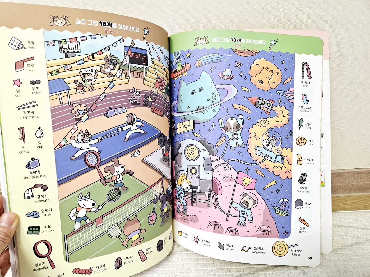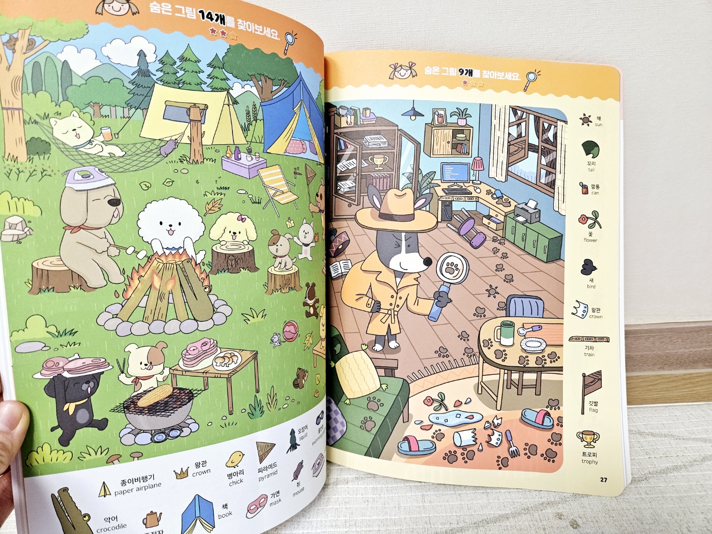 업체로부터 제품을 제공받아 작성된 후기입니다. 1000개 숨은그림찾기 : 강아지 양혜민, 홍혜련 그림한빛에듀아이들이 평상시에도 그림놀이하고 숨은그림찾기하는 것을 좋아라하다보니 이번에 1000개 숨은그림찾기 : 강아지 / 한빛에듀도서로 강아지편으로 준비해봤어요.1000개 숨은그림찾기 : 강아지 / 한빛에듀 도서에서는난이도가 표시되어 있다보니 구분하면서 아이들이 놀이할 수 있는데요.예를들어 숨은그림 14개에 대한 부분은 난이도가 낮은 편이다보니 별이 1개로 난이도표시가 되어 있답니다.똑같은 강아지를 찾는게임, 다른그림찾기, 숨은그림찾기 등다양한 강아지들의 귀여운 모습을 보는 재미도 있고아이들이 집중을 해서 놀이할 수 있는도서이기도 하였는데요.1000개가 넘는 찾기 개수로 구성되어 있다보니 한권으로아이들이 정말 오랫동안 놀이할 수 있겠더라구요.1000개 숨은그림찾기 : 강아지 / 한빛에듀 도서에서는숨은그림찾기 부분에 있어서 단순히사물을 찾는 것을 넘어서 사물이 한글과 영어로표기가 되어 있다보니 아이들이 한글과 영어를익히는 데에도 도움이 되겠더라구요. 요즘에 아이들이한글에 관심이 많다보니 한글을 같이 익히는 데에도도움이 많이 되고 있어요.자연스럽게 한글노출을 해주려는 부분이 있다보니 도움이 되겠더라구요.책상에 앉아서 오랫동안 무언가를 집중해서 하는 것을힘들어하는 아이들이었는데 1000개 숨은그림찾기 : 강아지 / 한빛에듀도서의 무궁무진한 숨은그림찾기 시리즈로아이들의 집중력까지 향상되는 데 도움이 되고 있답니다!
