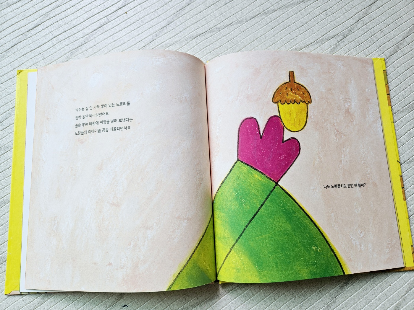 나누어도 괜찮아황선화글그림모든요일그림책저희 아이들은 유치원에서도 친구들에게 나누어주고양보하는 것이 부족한 것 같이 보이더라구요. 자신의 것을 빼앗긴다고 생각이 들어서인지 아이들에게 나누어도 괜찮아 / 모든요일그림책 도서읽어주기 시작했답니다.나누어도 괜찮아 / 모든요일그림책 도서에서는숲속 친구들이 주인공입니다. 박쥐, 늑대, 거북이, 사자를 귀여운 캐릭터로 그려놓다보니아이들도 집중을 잘하고 읽어주더라구요.도토리로 가득찬 박쥐의 집 때문에 박쥐는 집안에서마음껏 쉬지 못합니다. 노랑풀의 말을 진지하게 들어보고는박쥐는 다시한번 생각하게 됩니다. 친구들에게소중하게 아껴만 두었던 도토리를 나누어주는 것입니다.무언가를 나눌 수 있다는 것이 남들에게 일부분을빼앗기는 것이 아니라 행복과 기쁨을 나누어주는 일이라고생각이 들 수 있더라구요. 소중한 추억을 추억으로 간직하는 것도 중요하다고 생각이 듭니다.비우거나 없어지는 것이 아니라 나눔을 통해서다른 행복으로 비워진 공간과 마음을 가득해서채울 수 있다는 즐거움을 아이들이 나누어도 괜찮아 / 모든요일그림책 도서를 통해서 간접적으로 배워나갔으면 합니다.나누어도 괜찮아 / 모든요일그림책 도서의 삽화들 또한너무 복잡한 그림들이 아니기도 하다보니 아이들도따라서 박쥐, 사자 등을 그려보기도 하더라구요.또한 글밥 자체도 그리 많치 않은 편이다보니 아이들에게한번 읽어주니 그 글내용을 기억하고 아이들끼리도읽어보더라구요.동물친구들이 나눔을 받고 박쥐에게 고마워하는 장면들도나오는데요. 아이들도 이 부분을 보고같이 기뻐하고 뿌듯해하는 모습이 기특하더라구요. 저희 아이들도 나눔의 기쁨 행복을 다른 친구들과도실천을 하였으면 좋겠다는 생각이 드네요.그림책의 배경이 밝은 노란색들이많이 사용되다보니 아이들에게도 긍정적인 마음, 희망 행복 기쁨등의 메시지를 주기에 충분한 것 같습니다. 업체로부터 제품을 제공받아 작성된 후기입니다.