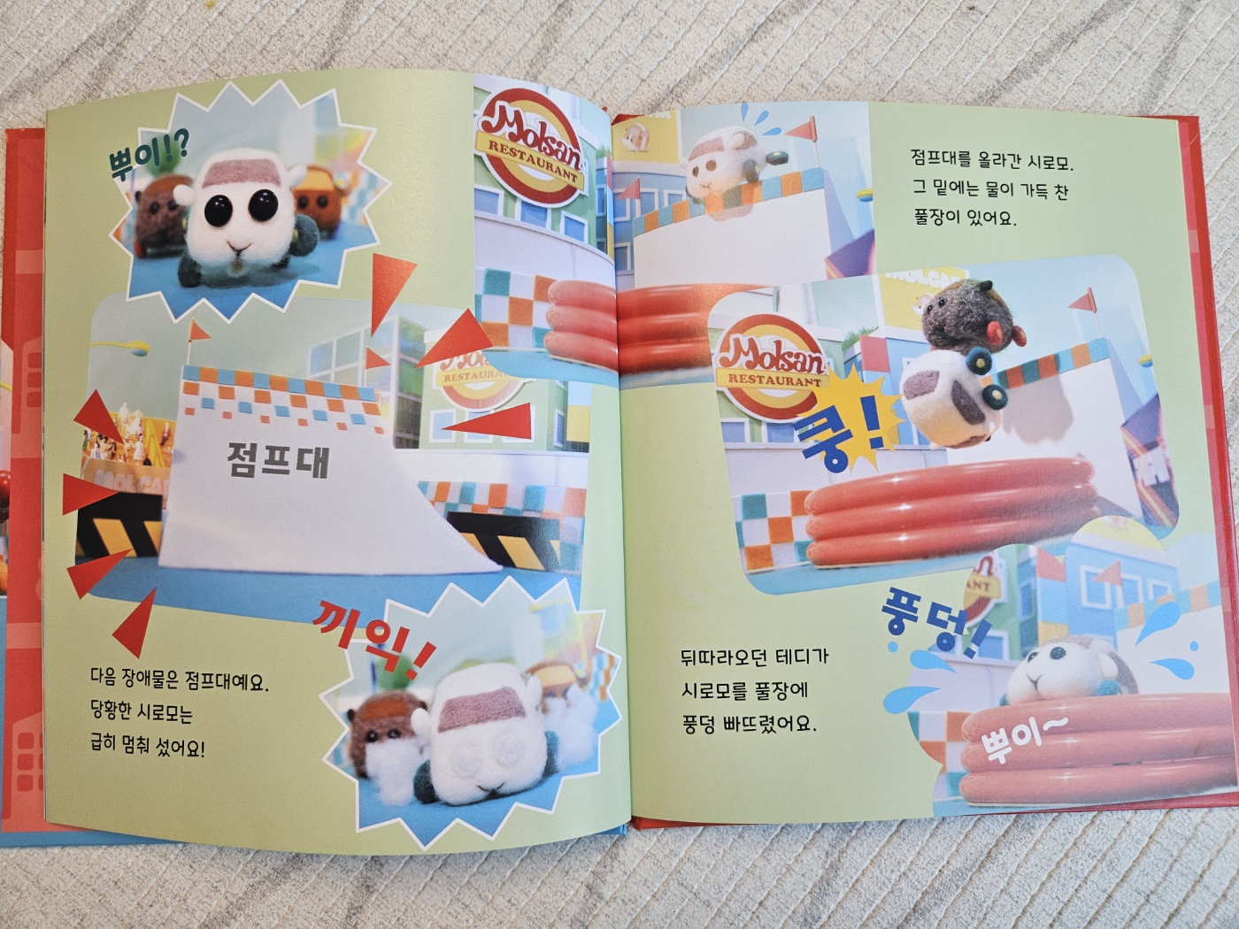 뿌이뿌이 모루카 : 뿌이뿌이 레이싱봉봉 역/미사토 도모키 감독 미운오리새끼저희 아이들은 어려서부터 자동차를 좋아라했는데요.그렇다보니 최애 애니메이션 또한 뿌이뿌이 모루카 이더라구요 ㅎㅎ이미 애니메이션으로도 자주 접하다보니캐릭터북으로도 아이들이 빠삭하게 다 알고있습니다.포테토, 시로모, 초코, 테디, 아비는 과연 뿌이뿌이레이싱에서 좋은 성적을 거둘 수 있을까요?앞서거니 뒷서거니 하면서 끝까지 긴장감을 놓지 못하게 하는재미난 내용이더라구요.과연 1등 상품인 채소가 듬뿍 담긴 트로피는 누구의차지가 될까요? 저희 아이들은 처음에 포테토와 초코가 엄청나게빠르게 달려서 둘중에 한 캐릭터가 1등을 할 것이라고 예측하더라구요.과연 저희 아이들의 예측이 맞았을지는 책을 끝까지 읽어보면 알수있답니다.^^번쩍, 슈웅, 부웅, 콰앙 등의 효과음들로 실제레이싱경기를 관람하는 듯한 생동감과 긴장감이 들곤 하더라구요.아이들도 뿌이뿌이 모루카 : 뿌이뿌이 레이싱 / 미운오리새끼 도서를통해서 뿌이뿌이 모루카의 친구들이 더욱 좋아졌다고 하더라구요.그리고 야채편식을 하는 아이들인데요. 특히나 저희 둘째아이..당근 절~~대 안먹거든요?!뿌이뿌이 모루카 : 뿌이뿌이 레이싱 / 미운오리새끼에서번개파워당근 보고 오늘저녁에는 계란말이에 당근을넣어도 된다네요. 먹어보겠다고^^어머나! 책을 통해서 ㅎㅎㅎ의외의 효과를 볼 수 있었답니다^^ 업체로부터 제품을 제공받아 작성된 후기입니다.