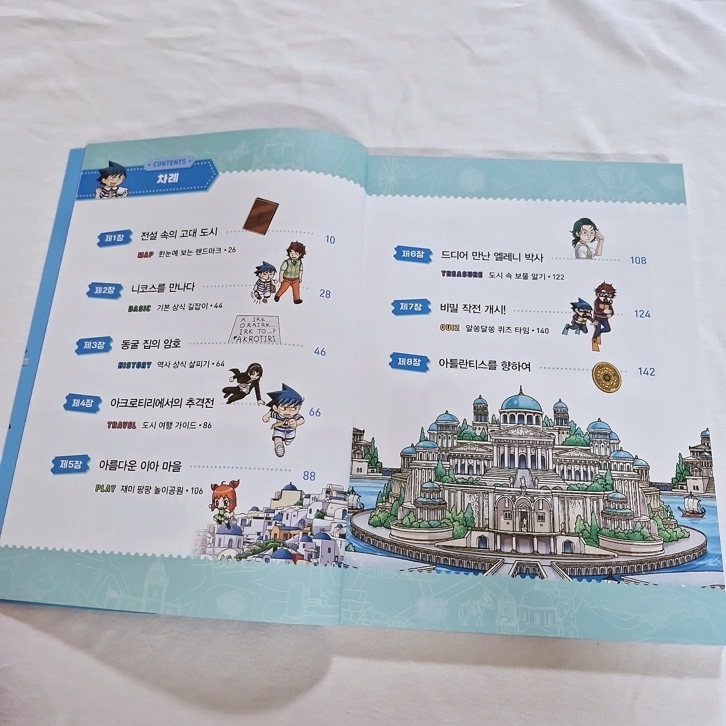 아이들과 세계여행을 많이 다니고 싶지만 생각처럼 쉽지 않은데요. 미리 초등 역사만화로 세계 문화와 역사 지식까지 배워보면 좋은 거 같아요. 이번에 아이와 읽은 책은 산토리니에서 보물찾기인데요. 그리스는 꼭 가보고 싶은 나라여서 더 기대를 모으는 책이네요. 책을 재미있게 읽다보면 역사와 문화상식까지 배울 수 있어서 좋더라고요. 아이가 책을 보더니 그리스 산토리니 여행을 가고싶다고...ㅎㅎㅎ 다음번 해외여행은 그리스로 가보자고 했네요. 책을 통해 끈기와 용기 역사도 배울 수 있는 책이라 좋았어요.
