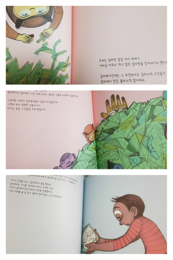 갈라레기 산에는 그 무엇보다도 갈라스틱 조각들이 넘쳐 났어요. 갈라에서 만든 플라스틱