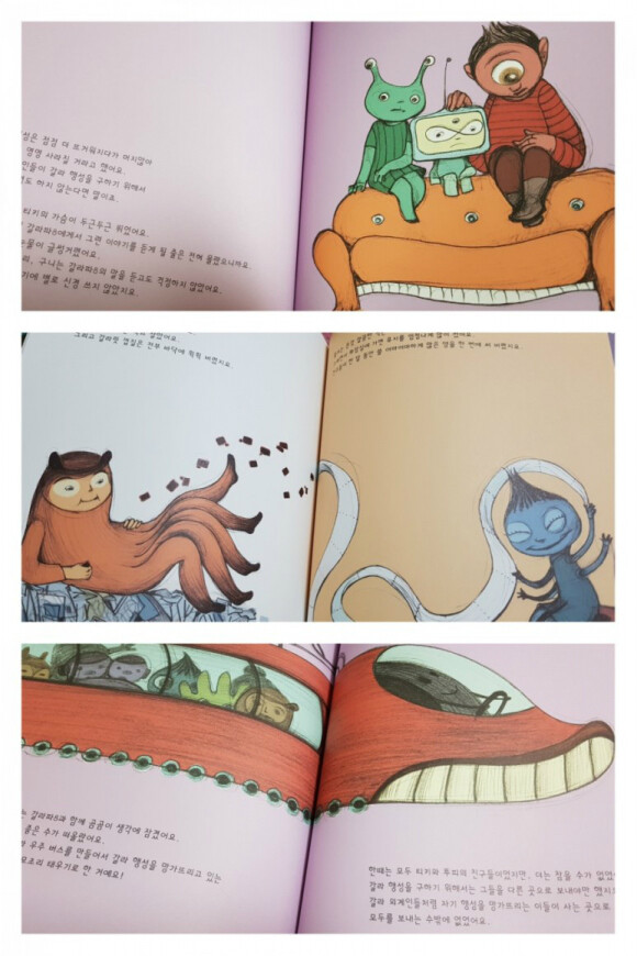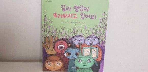 씨드북 [갈라 행성이 뜨거워지고 있어요!] 책 표지에는 갈라 행성에 사는 외계인들이