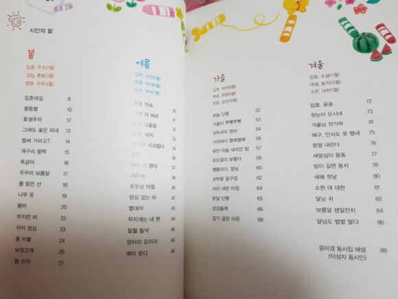 달님] 동시집은 봄,여름, 가을, 겨울로 나누어 각 계절별로 6가지