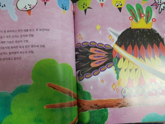 다양한 새들의 다양한 색감의 깃털과 뽐내는 모습들을 보는 재미가 좋고, 크레파스로