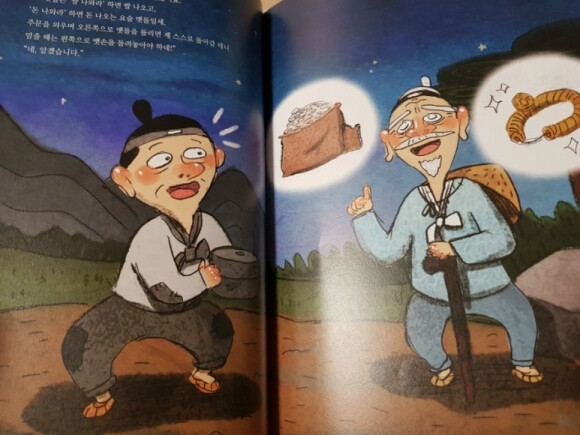 노인의 말대로 한 동생은 돌아오는 길에 노인을 또 만나 요술 맷돌에 대해 듣게 됩니다.