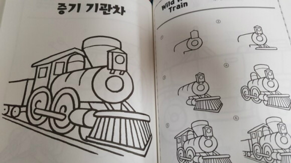 책의 탈 것 그림에는 색칠이 되어 있지 않고, 스케치 선이 또렷하게 느껴지는그림이라