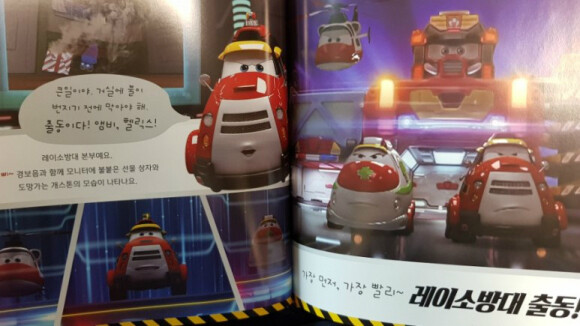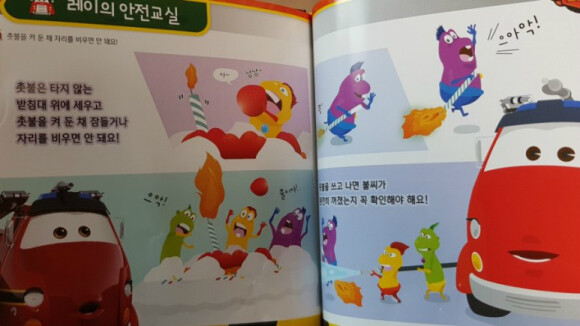 [용감한 소방차 레이] 책에서는 한글이 어려운 유아의 눈높이에 맞추어