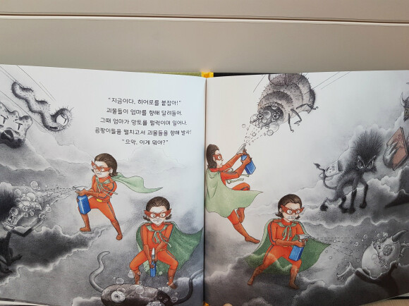 하기 위해 애쓰는 엄마의 모습을 곰팡이와 괴물과 싸우는 히어로의 모습으로