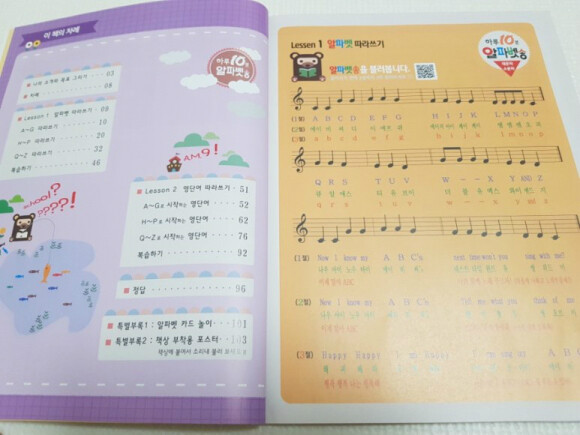 알파벳송은 책의 곳곳에서 악보와 가사, QR 코드로 만날 수 있는데요.