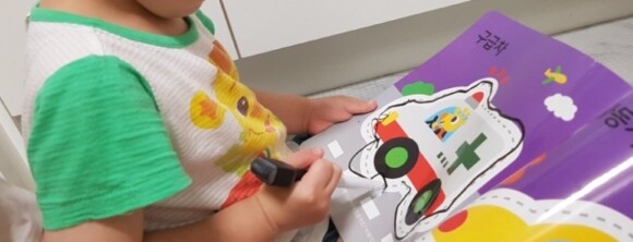 아이는 지우개로 쓱쓱~ 하는 걸 정말 재미있어 하네요!