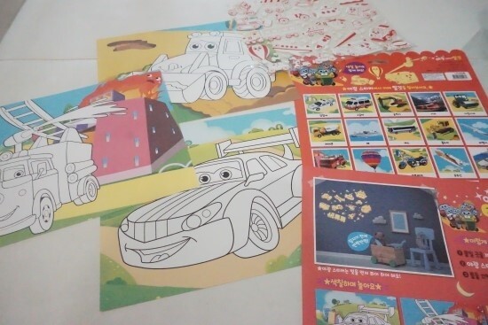 아이가 좋아하는 탈 것 스티커를 하나씩
