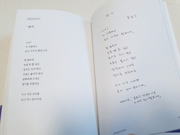 '편지'라는 시를 나태주 시인이 필사한 것도