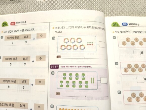 1-2학기 문제집을 풀고 있는 예비초1입니다.