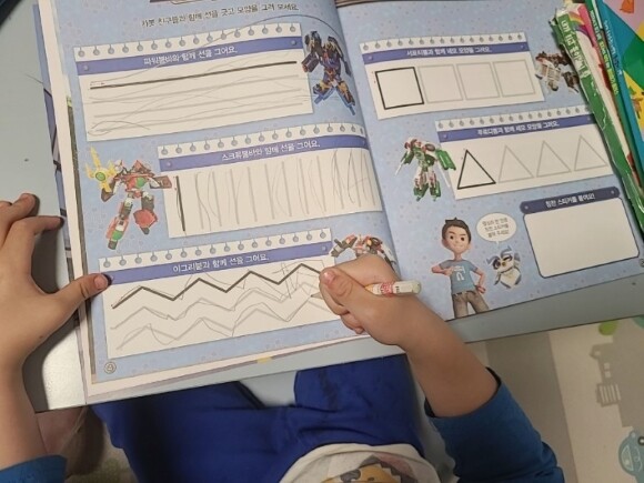 아이가 [헬로 카봇 시즌 12 술술술 숫자 쓰기]책을 가져와