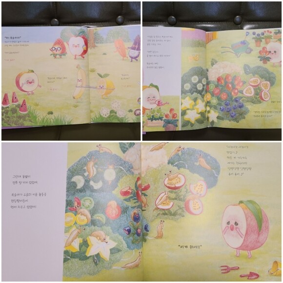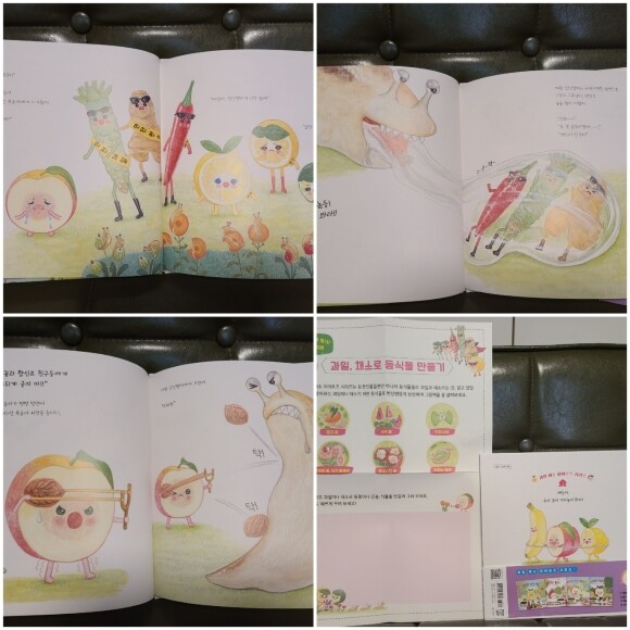 책 속에서 과일, 채소 친구들이 하는 기마전 속에서도