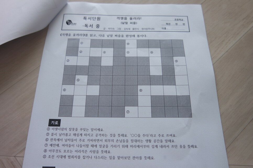 또, 활동지에 이 단어들로 낱말퀴즈를 풀어야하기 때문에
