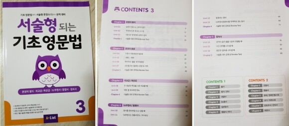 AList 서술형되는 기초영문법 교재는 총 3권으로 구성되어 있어요.