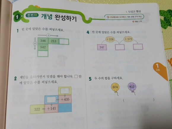 요즘 시작한 1학년 1학기 수학공부도 제법 잘 따라주는 터라