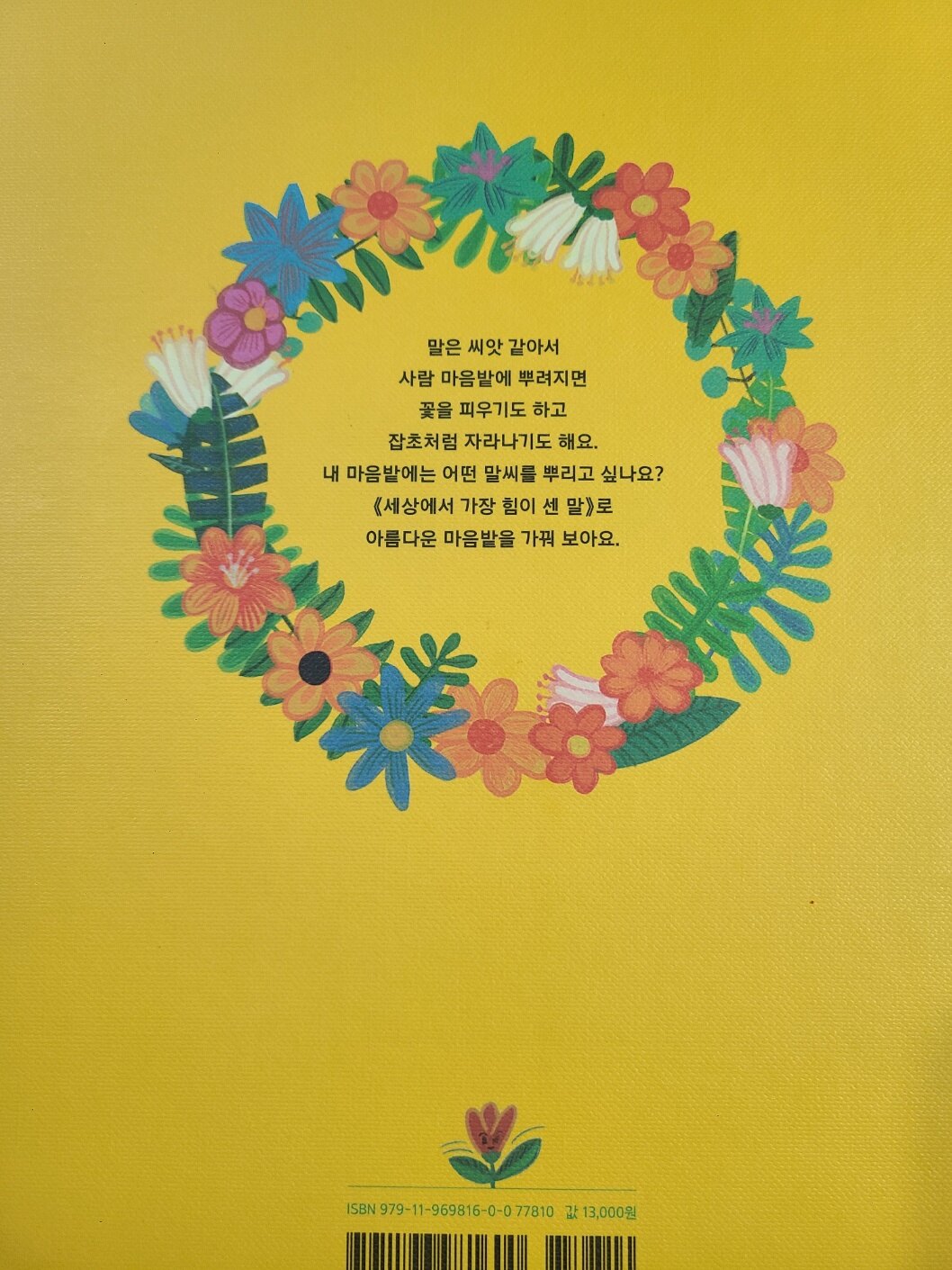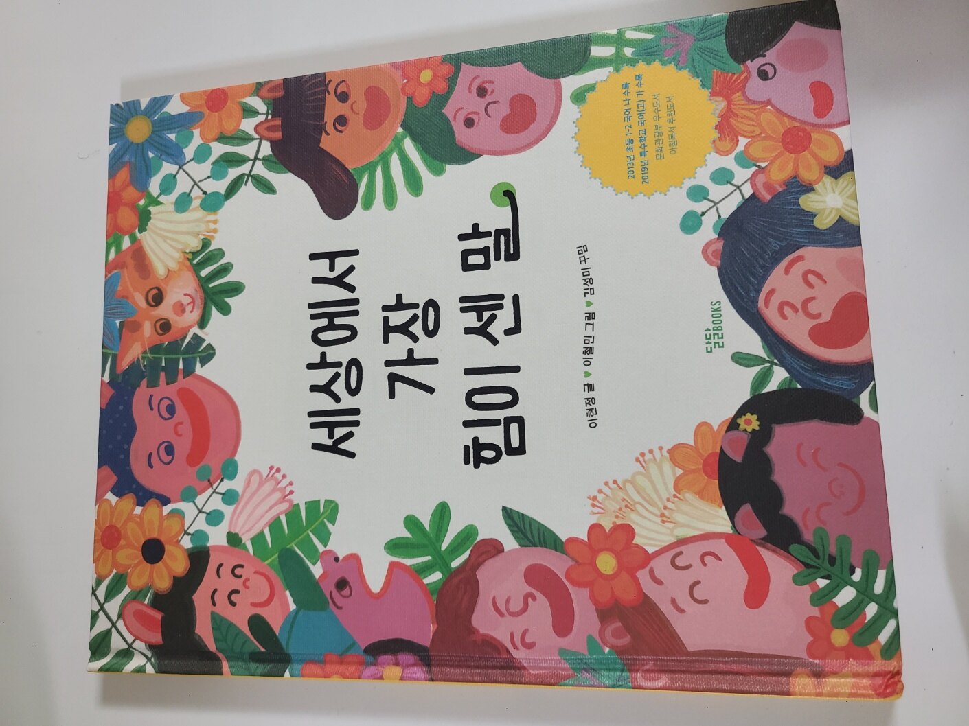 「세상에서 가장 힘이 센 말」은 제목대로 말의 힘에 대해 어린아이들도 쉽게 이해하도록 쓴 그림책이다. 예전에는 표지에 알통이 볼록한 그림이 있는 책을 보았는데 엉뚱하게도 말의 뒷다리를 떠올렸다가 뒤표지까지 펼쳐 보고서야 말의 의미를 이해했던 기억이 난다. 달달북스에서 새로 펴낸 책은 표지의 아이들이 마치 꽃이 되어 화관처럼 제목을 둘러싸고 있는 모습이 참 따뜻하게 느껴진다. 제목의 글씨체도 훨씬 단정, 단단하고 부드러운 힘이 느껴진달까.