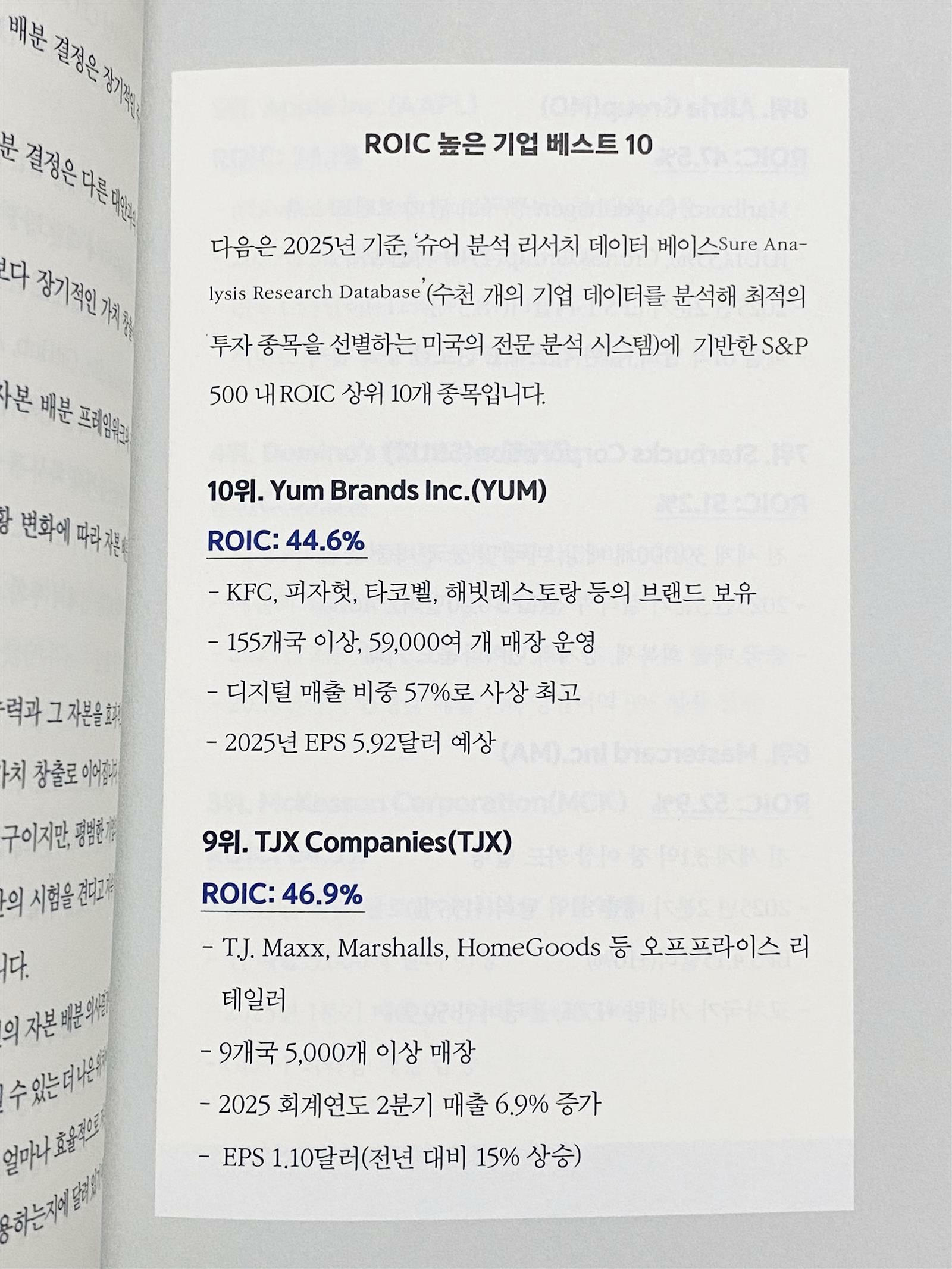 ROIC 높다고 무조건 좋은 종목이 아니라고 서술 되어 있지만 여기 소개된 리스트 속 기업들은 아직은 괜찮은 종목들인거 같다.