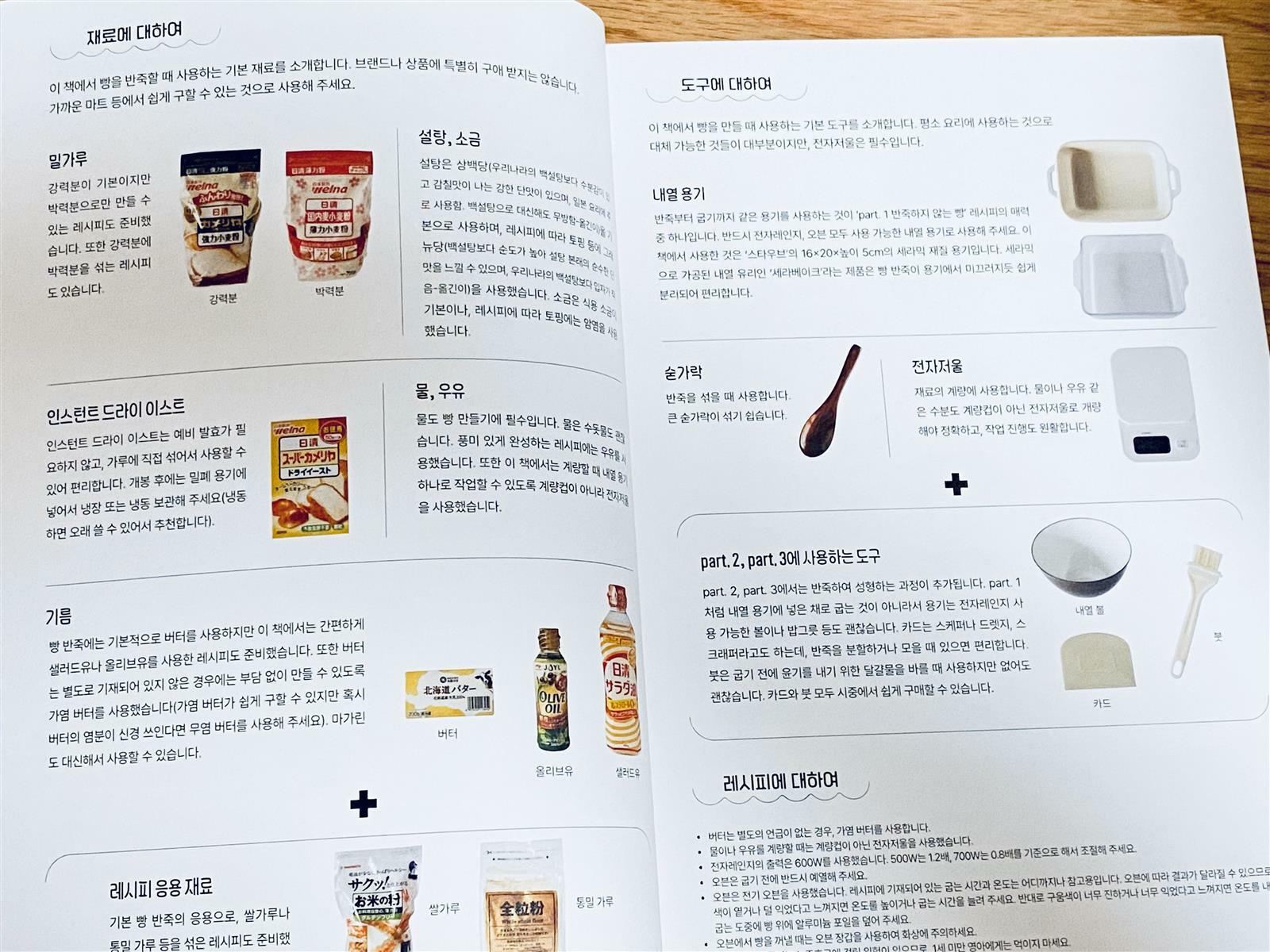 책의 처음은 베이킹하면서 알아두면 좋은 팁들과 재료와 도구 소개가 나와있다.