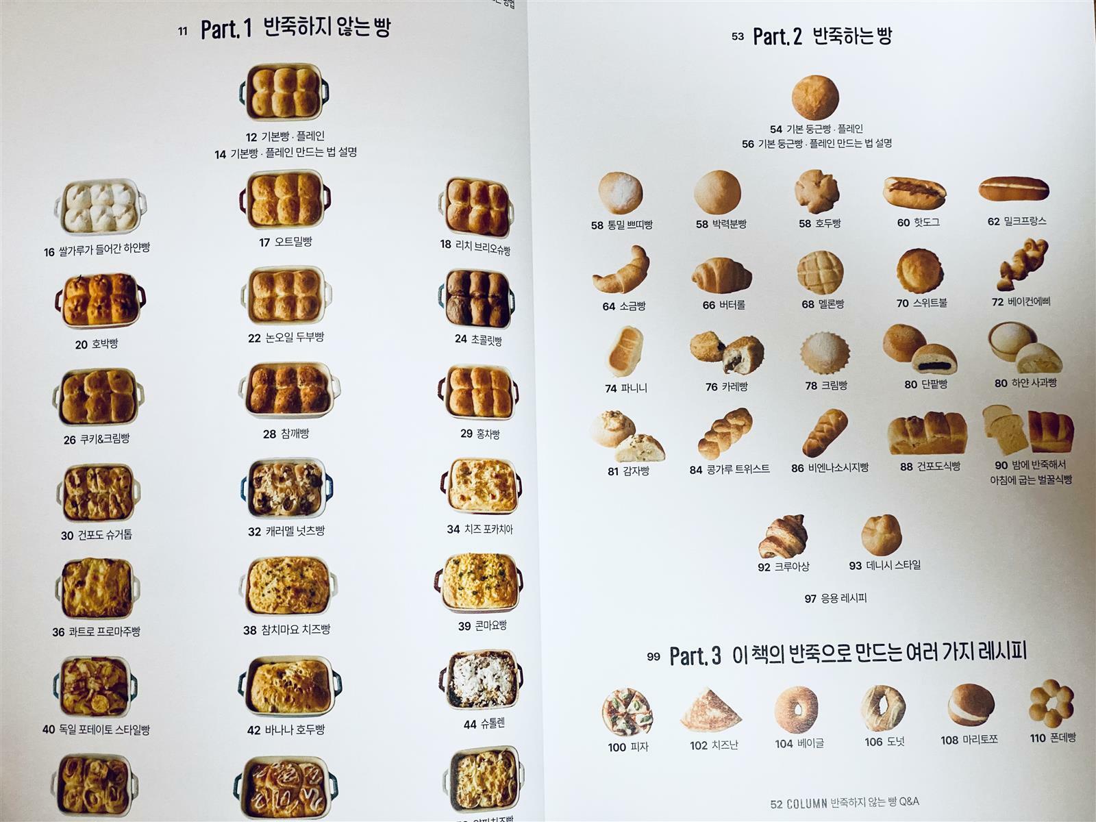 이 책은 반죽하지 않는 빵과 반죽하는 빵, 그리고 그 외 반죽으로 만드는 스페셜 레시피 등 3가지로 나누어 소개 되어 있다.