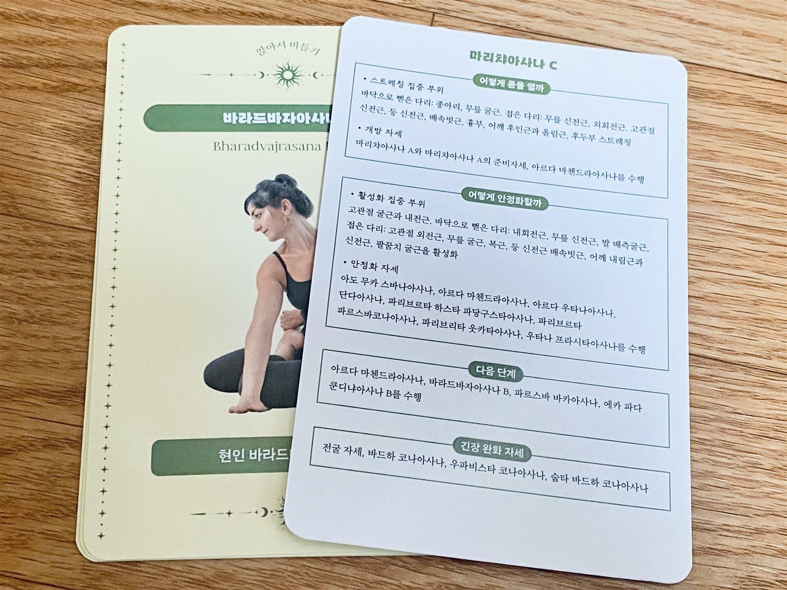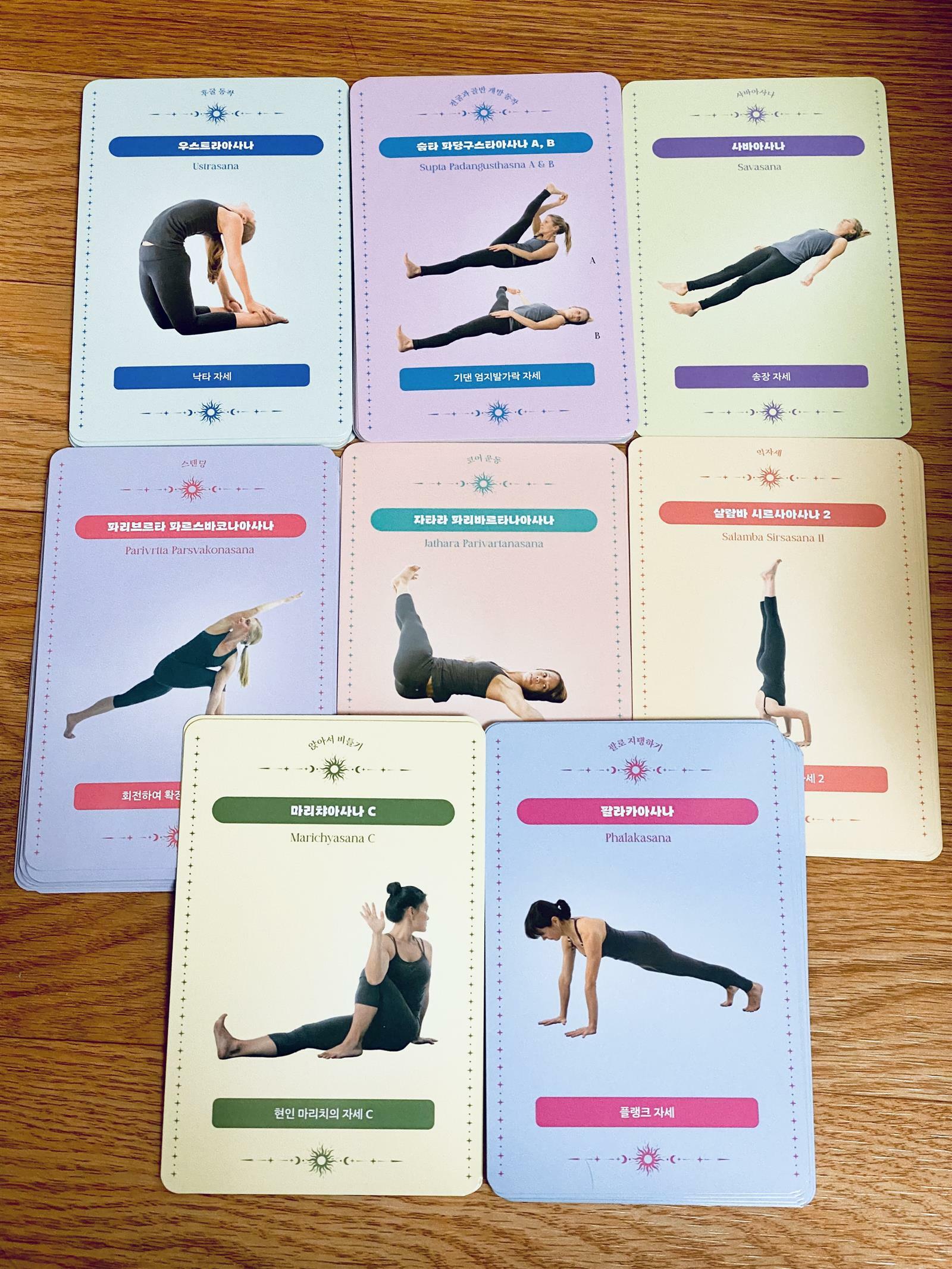 카드들보니 생각보다 여기저기서 많이 봤던 동작들이 꽤 있었다. 그리고 생각보다 고난위도 자세들도 꽤 있어서 쉬운 동작 위주로 먼저 차차 실천하면 될 꺼같다.
