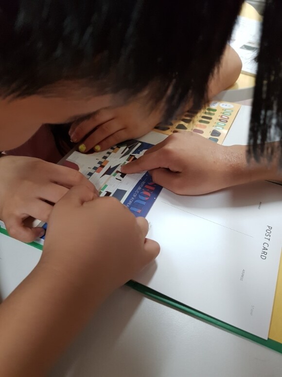 자신이 만든 엽서에서 가장 맘에 드는 엽서를 골라 큰딸이 좋아하는