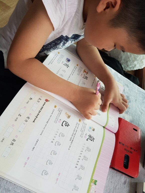 첫째도 물론 한자를 좋아하고 자신이 즐거워서 하고 있는것도 있지만 엄마의 반 강요에