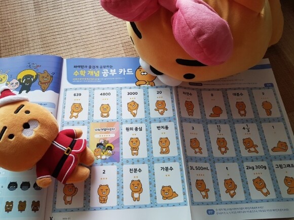 둘째의 애착인형 라이언이 공부 카드에 가득이네요 ~