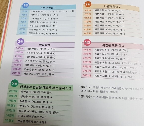 기적의 한글 학습은 1권에서 5권까지 단계학습이