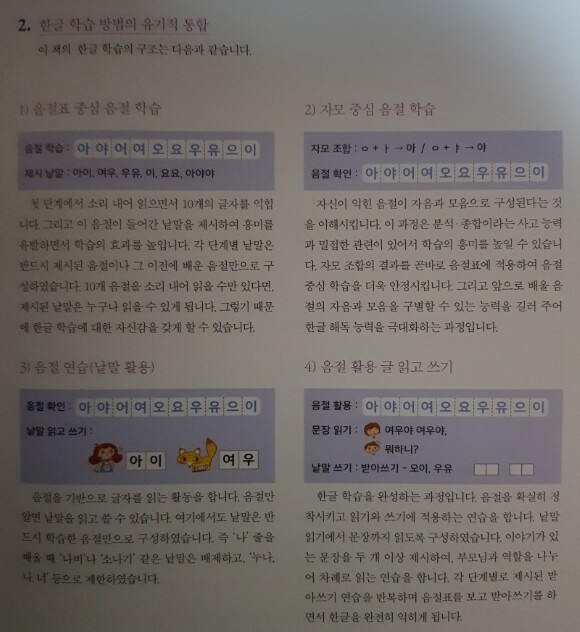 소리 내어 읽어보고 글자의 짜임 학습까지 체계적으로