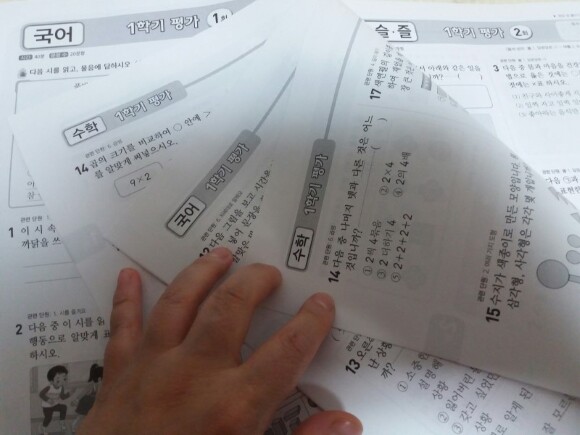 중간, 기말 시험에 대비해 월간우등생학습 문제집이 오니