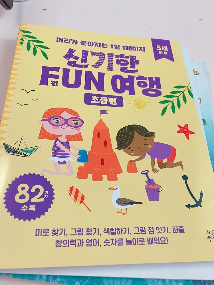 82가지수록되어있는 신기한 fun여행 초급편 아침마다 아이가5-7장 풀어주며 하루 맞이하는 재밌는 책 저희아이가 가장좋아하는 틀림그림찾기 색칠하기 미로찾기 너무 골고루 있는거 아닌가요 최고입니다 밖에 나갈때도 이거 한권가지고 나가서 엄마와 카페 나들이 했어요 영어공부도 같이할수있는 재밌는책 엄마와 집중해서 찾아보고싶다고 가져온 틀린그림 찾기까지 지문으로 되어있는 그림 완성까지 아이의 창의력을 보는 그런 최고입니다 작은우주출판사 서평단 자격으로 작성한 리뷰입니다