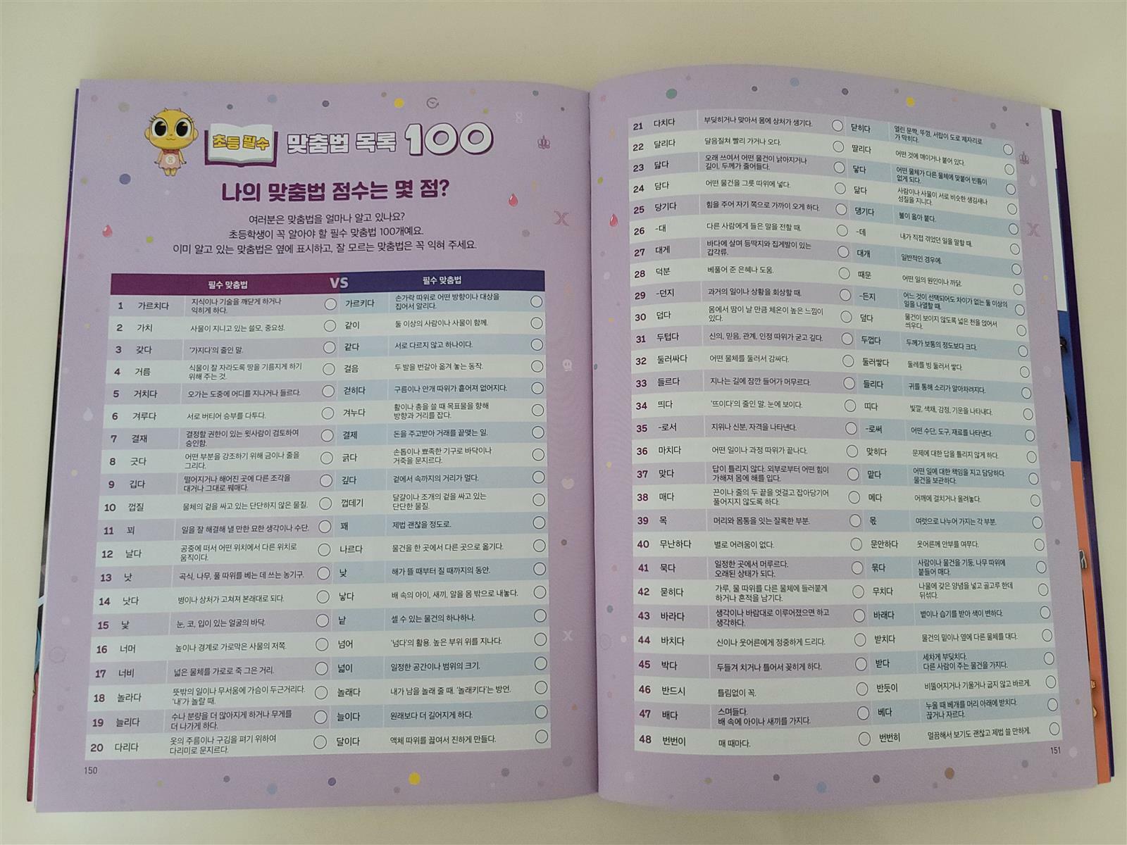 초등학생이 틀리기 쉬운 낱말들로 구성해 있어요.