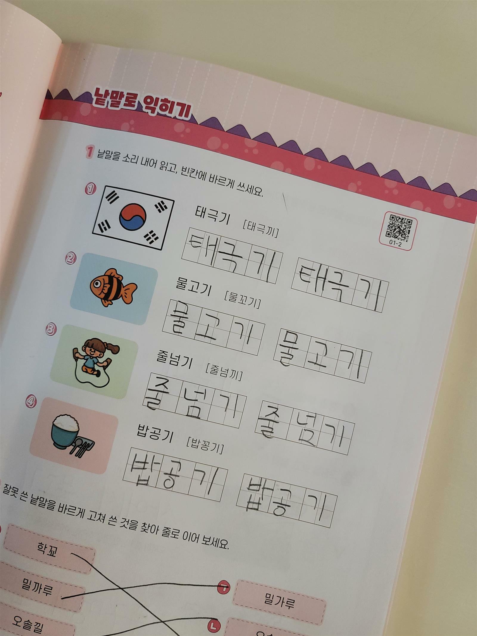 먼저 교재에 있는 QR코드를 찍어서 단어들을