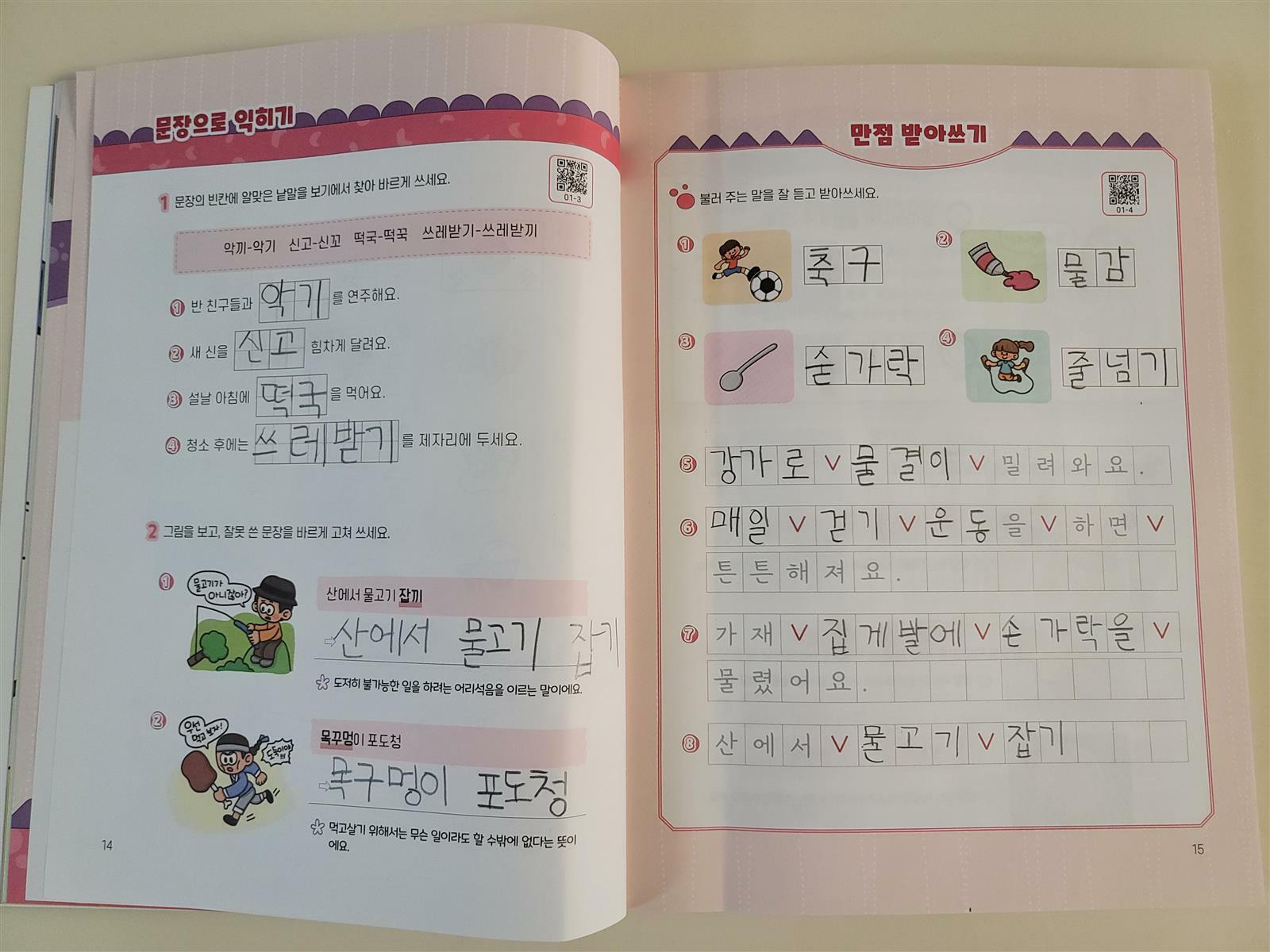 이번에는 만점 받아쓰기 페이지로 역시 큐알코드를 찍어