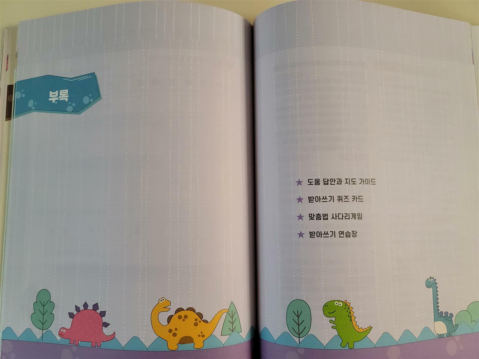 끝으로 마지막 부록에는 *도움 답안과 지도 가이드 *받아쓰기 퀴즈 카드