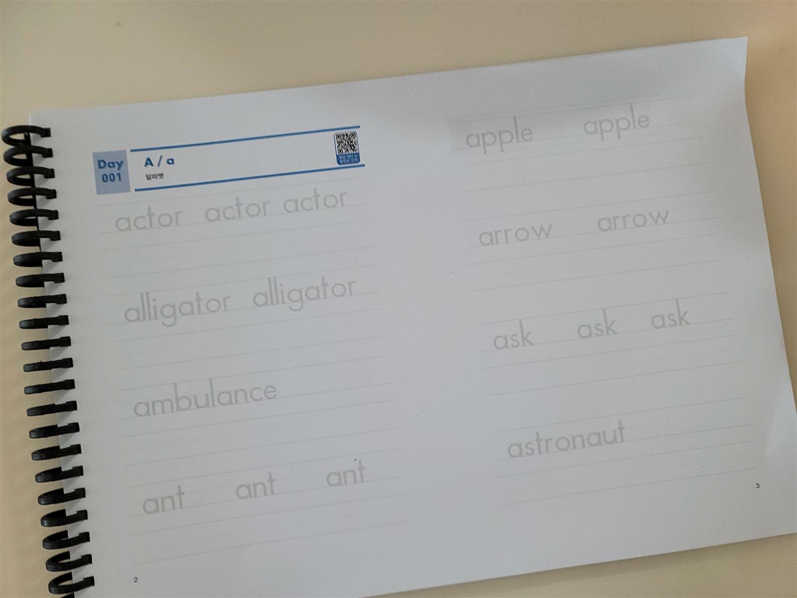 순서에 따라 알파벳을 써보므로써 정확하게 써 볼 수 있었어요.
