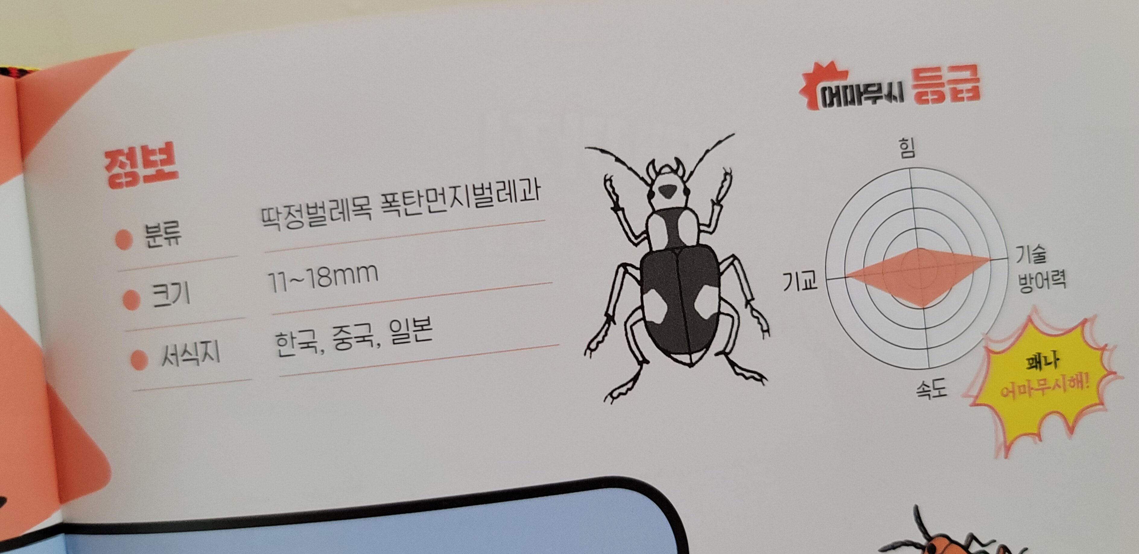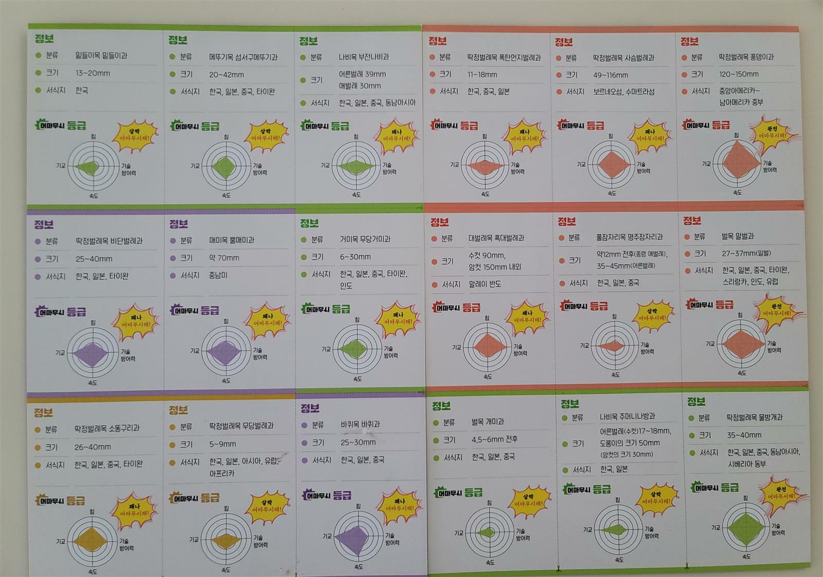 각 곤충들의 그림 뒷면에는 어마무시 등급과 정보가 있어서