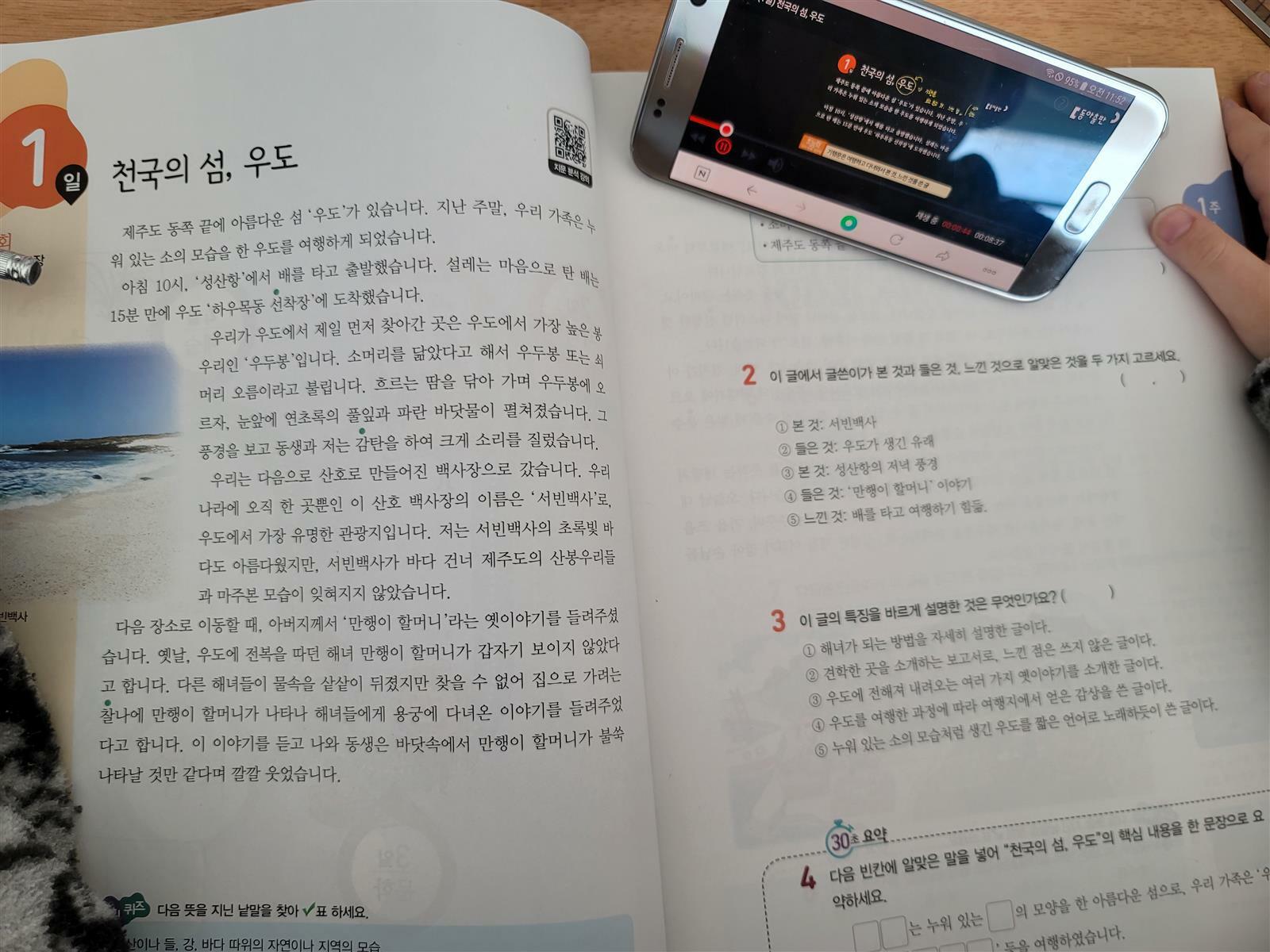 교재 제일 뒷부분에 QR코드가 있으며 이를 찍어서 들어 보며 학습을 할 수 있어요.