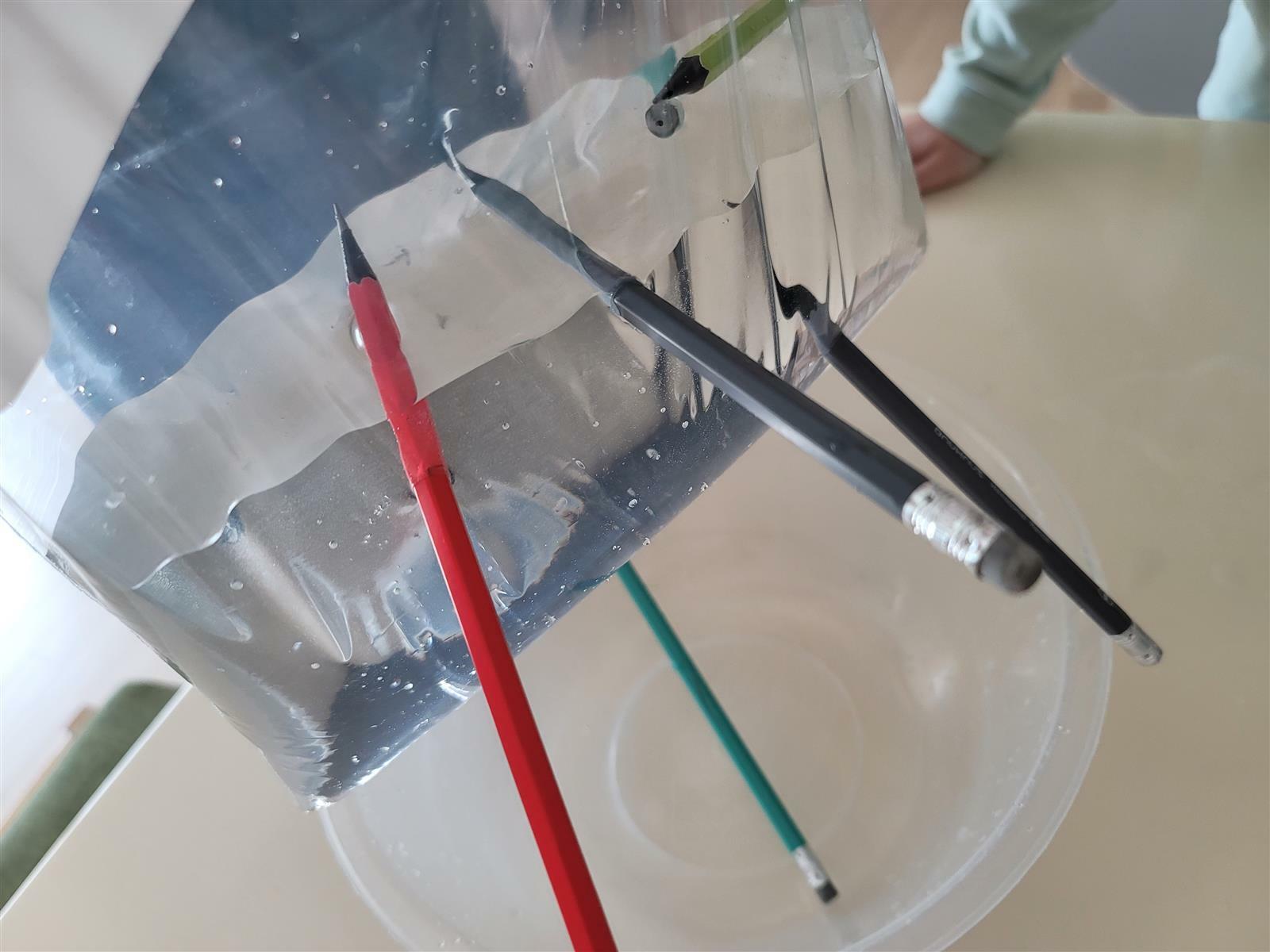 또 비닐봉투에 물을 담아 연필을 꽃아 보며