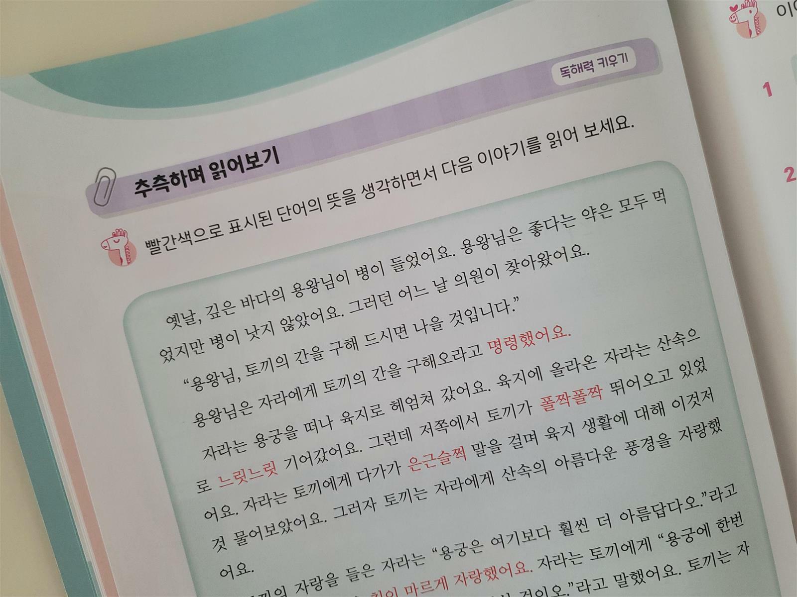 이야기 곳곳에 빨간 글씨로 표시된 필수 어휘들을
