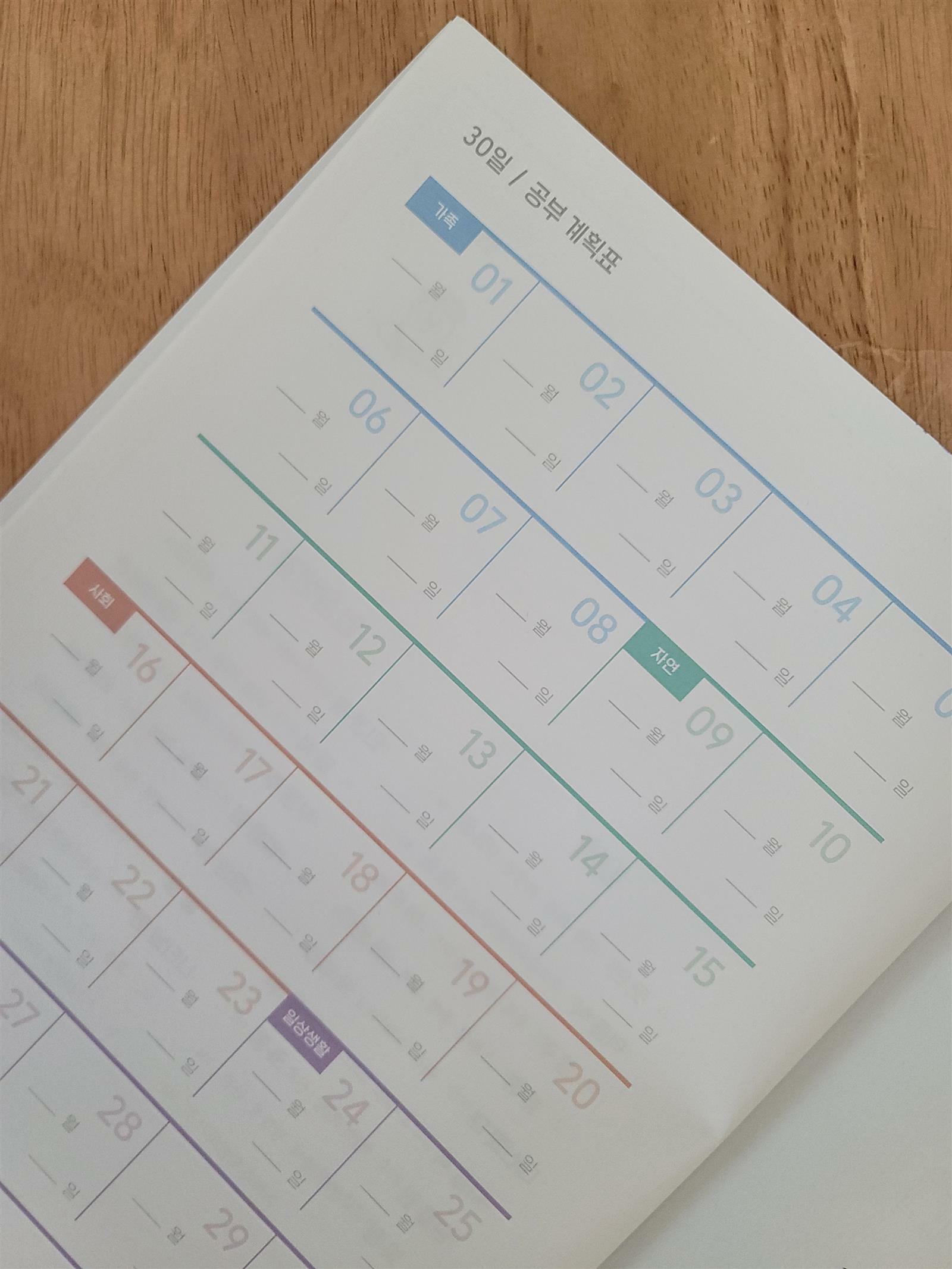 30일 / 공부 계획표가 요렇게 교재 차례 페이지 다음에