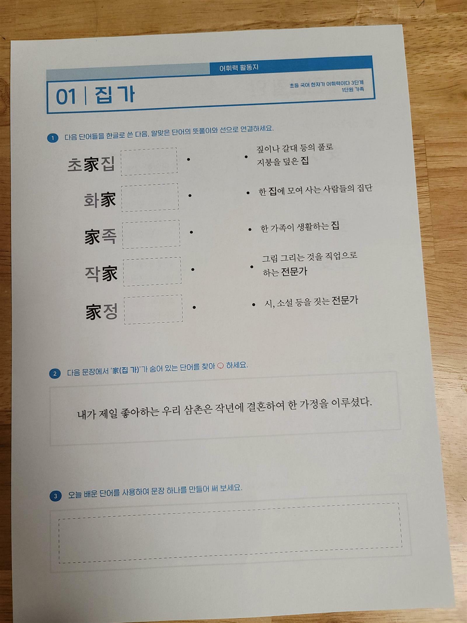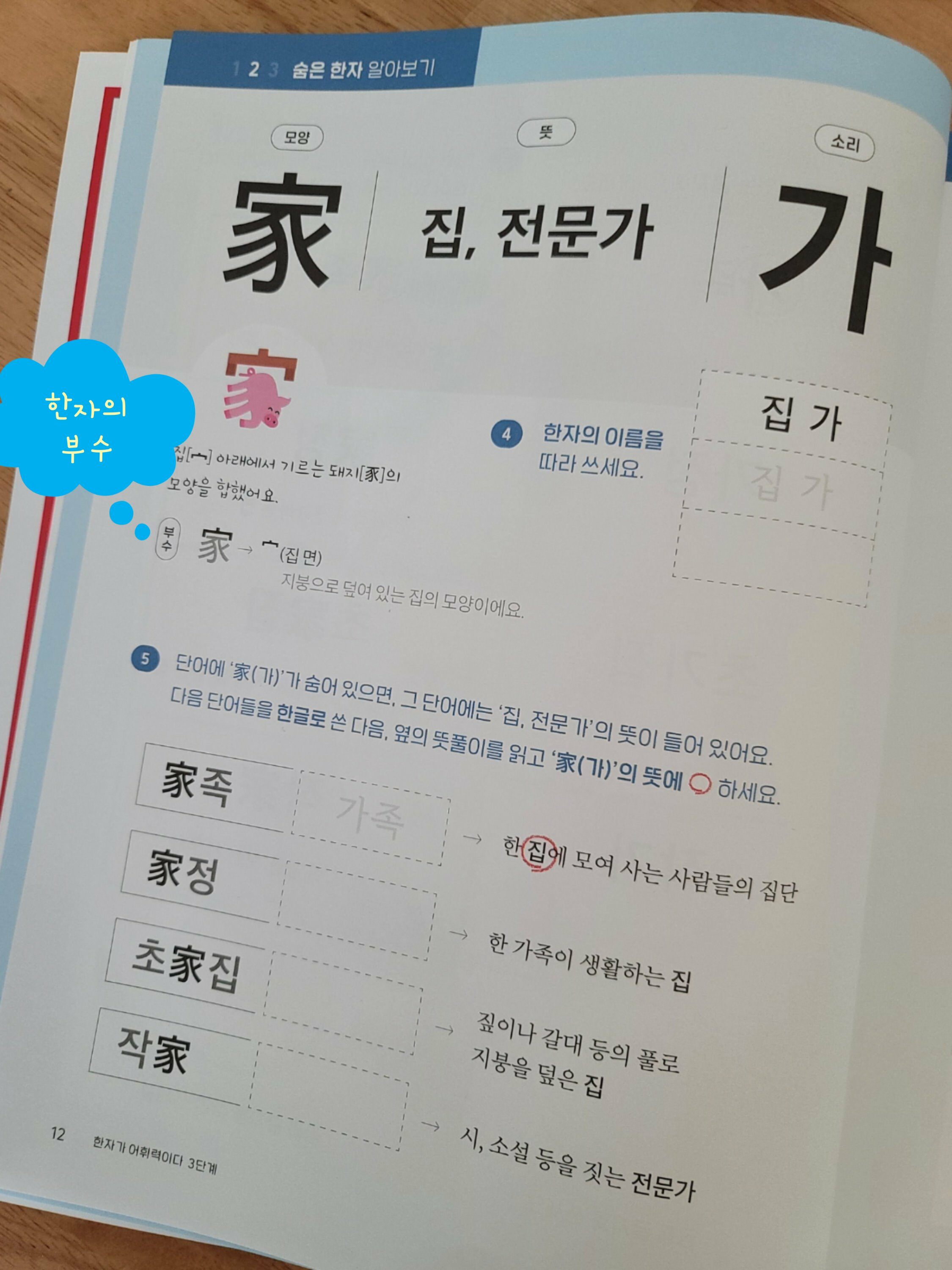 관련된 한자를 배우고 그에 대한 어휘를 학습 해 보도록 되어 있어요~