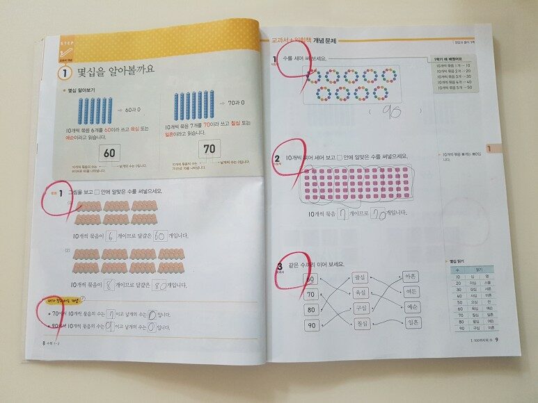 차례를 보고 1학년 2학기에는 어떤걸 배우는지 미리 확인 할 수있어서 먼저 보고 학습 해보았어요.