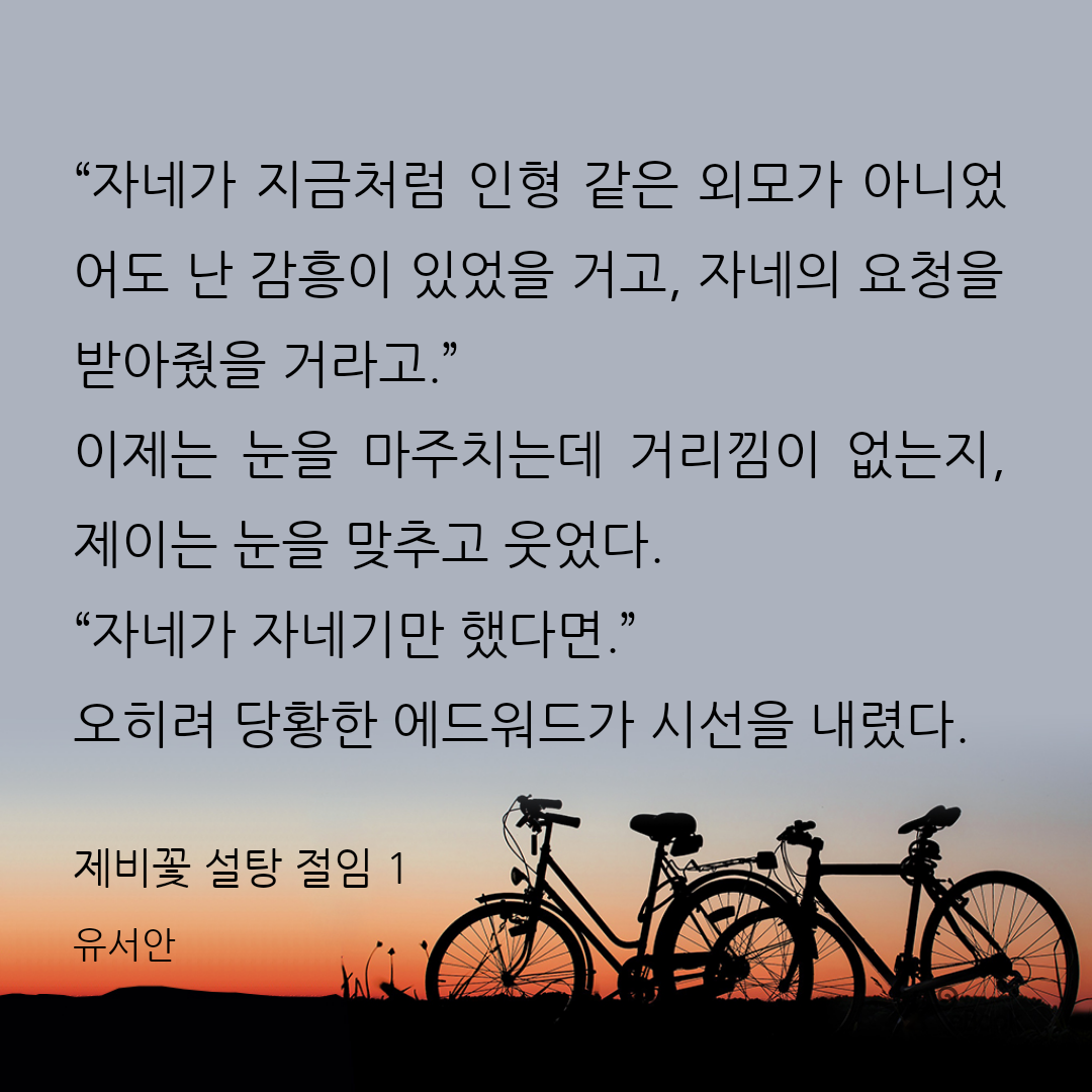 유서안님 작품으로는 '제비꽃 설탕 절임'하나던데 꼭 스핀오프 작품을 읽는 느낌이었습니다.