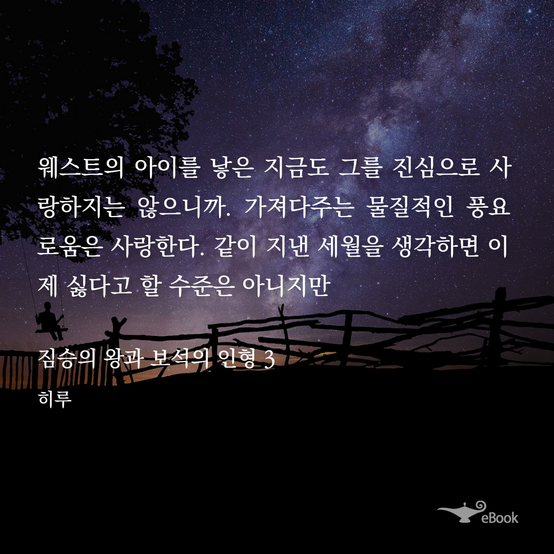 “그런데 너도 짝인 남자가 싫다고 하니까 엄청 웃겼지. 즐길 건 다 즐기고 있는 주제에 뭐가 마음에 안 든다고. 진짜 못 돼 처먹었어.”     -알라딘 eBook <짐승의 왕과 보석의 인형 1> (히루) 중에서