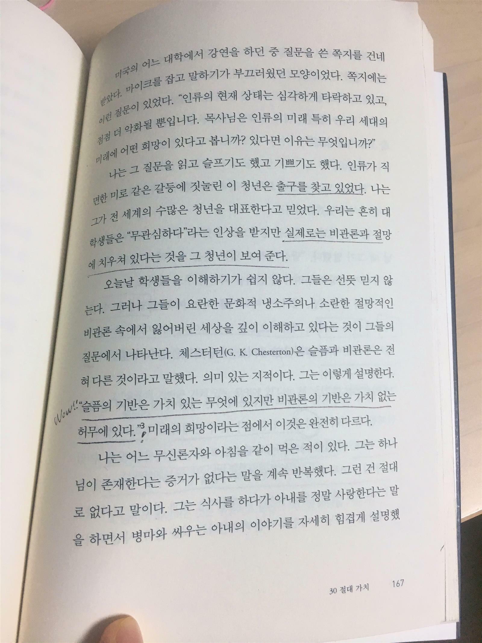 팀켈러는 성경, 특별히 복음서를 중심으로 질문들에 답을 풀어갔다면, 라비 재커라이어스는 질문을 중심에 두고 답을 찾아간다. 총 52개의 주제 안에서 2~3장으로 답을 풀어가는 방식이어서 가끔은 답에 대한 갈증이 해소되지 않을 때도 있다. 하지만 답을 찾아가는 방식은 지극히 복음적이어서 내 마음과 삶을 예수그리스도 앞에 서게 한다.